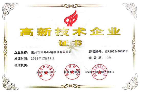 近日,中節(jié)能生態(tài)下屬荊州公司被評為高新技術企業(yè),湖北省科學技術廳、湖北省財政廳、國家稅務局湖北省稅務局聯(lián)合為其頒發(fā)“高新技術企業(yè)”認定證書。