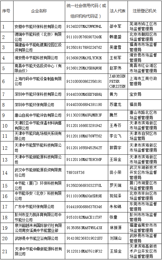現中國節能鄭重聲明,經我集團核實,以下公司及其下設各級子公司與我集團無任何隸屬或股權關系,也不存在任何投資、合作、業務等關系,其一切行為均與我集團無關。請社會各界提高警惕,注意防范風險。