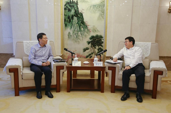 8月25日下午,集團公司黨委書記、董事長廖家生在節能大廈會見中國光大銀行股份有限公司黨委書記、行長郝成一行,雙方就開展務實合作進行深入交流。集團公司黨委常委、總會計師朱慶鋒參加會見。