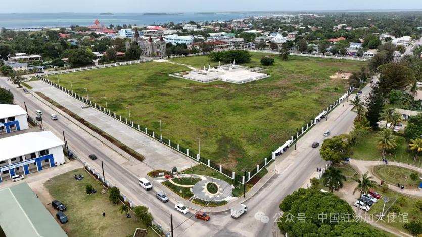 援湯加王陵項目位于湯加王國首都努庫阿洛法市中心,是湯加首都的地標(biāo)性建筑,具有重要的文化和宗教意義。項目于2024年2月開工,2025年8月完成竣工驗收,建設(shè)內(nèi)容包括王陵輔助用房、墓室墓道、圍擋圍墻、停車場及人行道。項目四個街角花園融入了湯加文化元素和精神文化地標(biāo),既可以保護(hù)美化湯加王室遺產(chǎn),又可以改善區(qū)域旅游基礎(chǔ)設(shè)施,為當(dāng)?shù)匕傩仗峁┬蓍e活動場所。