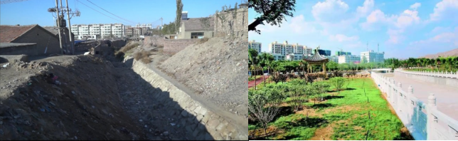 左1十五里河流域綜合治理項目分布圖 右1十五里河流域治理后