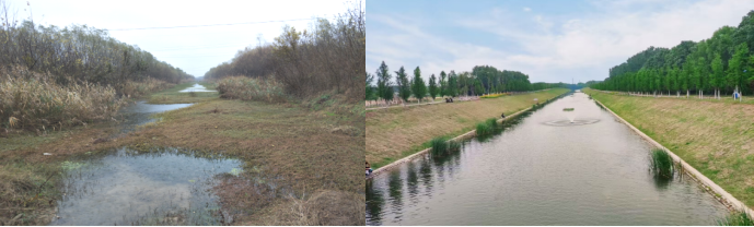 左1界首城區黑臭水體治理前 右1界首城區黑臭水體治理后