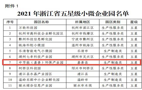 中節能實業公司嘉善產業園獲評2021年浙江省五星級小微園 |