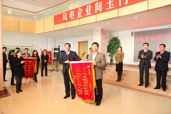 追憶到2008年,往昔的鐵人故鄉(xiāng),中節(jié)能風(fēng)電以超人的膽識(shí)與智慧,逐鹿河西走廊,改寫著曾經(jīng)“春風(fēng)不度玉門關(guān)”的豪言,勇奪國家第一個(gè)千萬千瓦級(jí)風(fēng)電基地啟動(dòng)項(xiàng)目——甘肅玉門昌馬20萬千瓦風(fēng)電特許權(quán)項(xiàng)目,從此展開了中國節(jié)能在西北大漠的創(chuàng)業(yè)歷程。春風(fēng)化雨,從2009年4月20日首臺(tái)風(fēng)機(jī)吊裝到11月19日為國家首個(gè)千萬千瓦風(fēng)電基地送出第一度電,在不到一年的時(shí)間里化荒蕪戈壁為生機(jī)無限,讓綠色風(fēng)能點(diǎn)亮萬家燈火,被各大媒體譽(yù)為“風(fēng)一樣的中節(jié)能速度”。