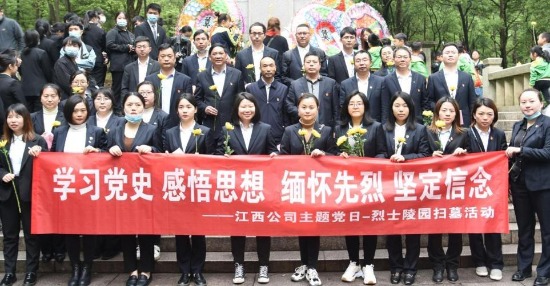 江西公司黨委緊緊圍繞“學黨史、悟思想、辦實事、開新局”的總體要求,組織各黨支部深入研讀黨史著作,全面深刻把握黨的百年奮斗史,感悟黨的初心和使命,推動江西公司高質量發(fā)展。一是豐富形式深入學。公司黨委積極推進線上“互聯(lián)網(wǎng)+”模式,通過支部群、微信公眾號、網(wǎng)站等,每天發(fā)布黨史知識,為黨員隨時隨地學習提供條件;認真落實主題黨日活動,找準嚴肅黨內生活抓手;組織觀看《正風反腐就在身邊》專題片,開展廉政警示教育;觀看抗疫先進典型、全國優(yōu)秀共產黨員先進事跡視頻,學習先進模范,爭做時代楷模,進一步濃厚學習氛圍,激發(fā)學習熱情。二是緬懷先烈筑根基。公司黨委利用當?shù)丶t色資源,積極開展“傳承紅色基因、賡續(xù)紅色血脈”活動,組織30余名黨員和入黨積極分子前往方志敏烈士陵園,誦唱《沒有共產黨就沒有新中國》《清貧》等,緬懷先烈愛國魂,牢記先烈英雄史,引導廣大黨員繼承優(yōu)良傳統(tǒng),厚植紅色基因,激發(fā)愛國情感,為建設新時代江西公司貢獻力量。三是設崗定責抓力行。公司下屬的晶和黨支部聚焦聚力重點任務,組織開展“設崗定責”活動,為黨員搭建發(fā)揮作用平臺。黨員職工在做好本職工作的同時,圍繞“黨建工作崗、文明服務崗、遵章守紀崗、革新發(fā)明崗、職工維權崗”5個崗位,積極申報認領,并簽訂上崗履職責任書,以責引學,擔責促做,切實把學習教育渙發(fā)的熱情轉化為推進發(fā)展的動力。