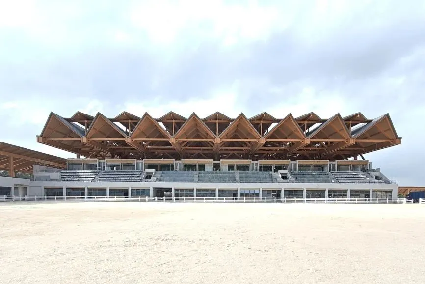馬術場館屋頂由73000余個、直徑20毫米的膠合木螺栓鎖住。單榀(雙拼)木梁最大長度達96米,木梁跨度66米,最大懸挑20米,系國內最大跨度的木結構體育建筑。