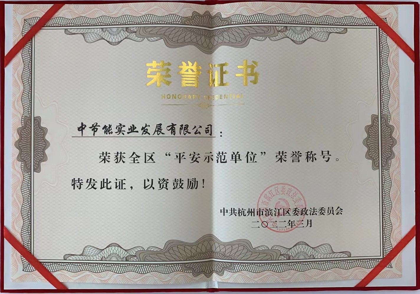 近日,在杭州市高新區(qū)(濱江)召開的“平安”專項工作會議上,中節(jié)能實業(yè)公司獲評杭州市濱江區(qū)平安建設示范單位。